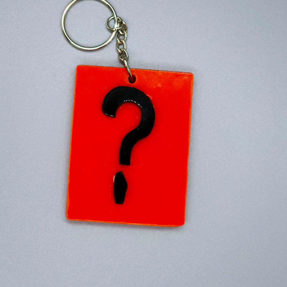 Multilayered acrylic question mark keychain/charm for backpacks, totes, purses, gym bags and more. Hidden inside is an NFC tag that allows you to program whatever information you want to share with others so they can just scan it with their smartphone and instantly have your shared information. If you decide you want to change the information you just go back to the app and make the changes.